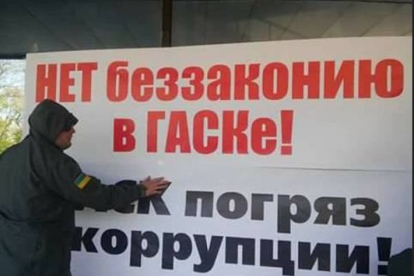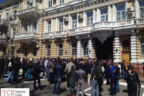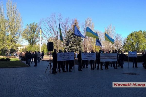 Работники стивидорной компании пикетируют Николаевский филиал Администрации морпортов Украины 2017-04-25