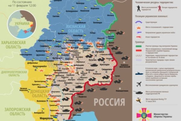 За минувшие сутки погибли 19 украинских военнослужащих, 78 – ранены. Карта АТО на 11 февраля 2015-02-11