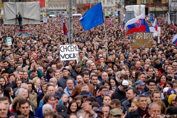 Словаки снова вышли на митинг и требуют провести досрочные выборы из-за убийства журналиста 2018-04-28