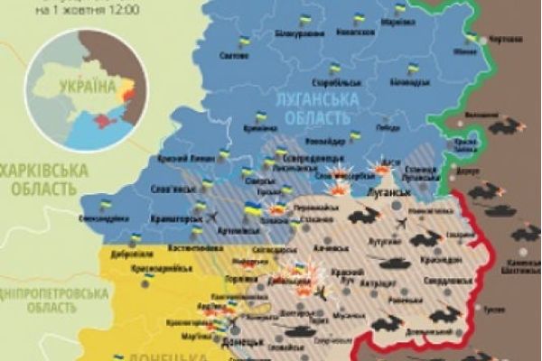 Актуальная карта боевых действий в зоне АТО по состоянию на 1 октября