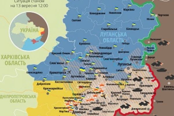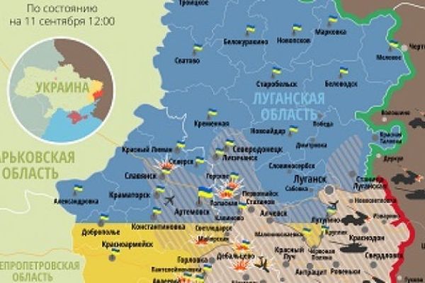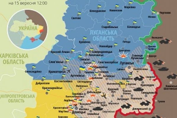 Количество обстрелов украинских позиций увеличивается. Карта АТО по состоянию на 14 сентября 2014-09-14
