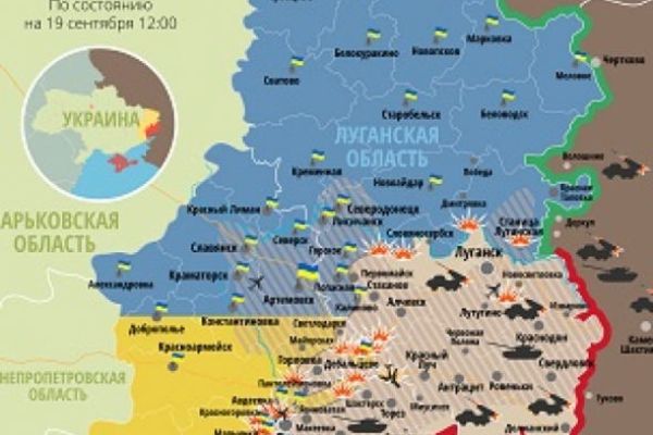Актуальная карта боевых действий в зоне АТО по состоянию на 19 сентября — террористы обстреляли «Счастье» 2014-09-19