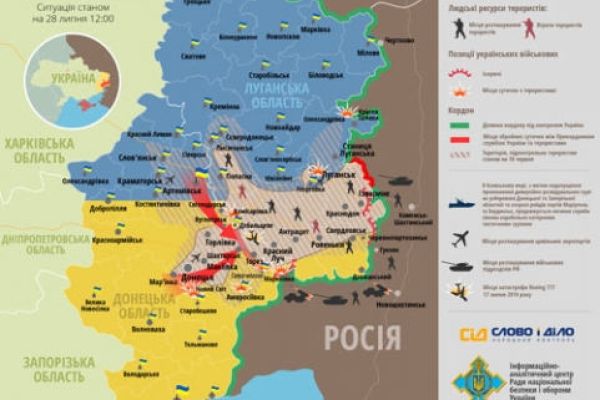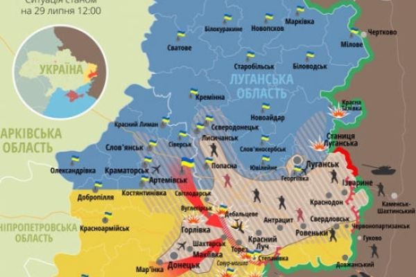 В течение суток пророссийские боевики более 20 раз обстреляли блокпосты Вооруженных Сил Украины (карта) 2014-07-24