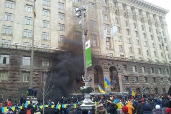 Протестующие, забаррикадировавшиеся в Киевской горадминистрации, отбили попытку «Беркута» захватить здание 2013-12-11