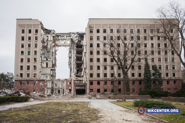 Рік війни у Миколаєві в світлинах: трагедія в ОДА, зруйновані житлові будинки, знищені заклади освіти 2023-03-24